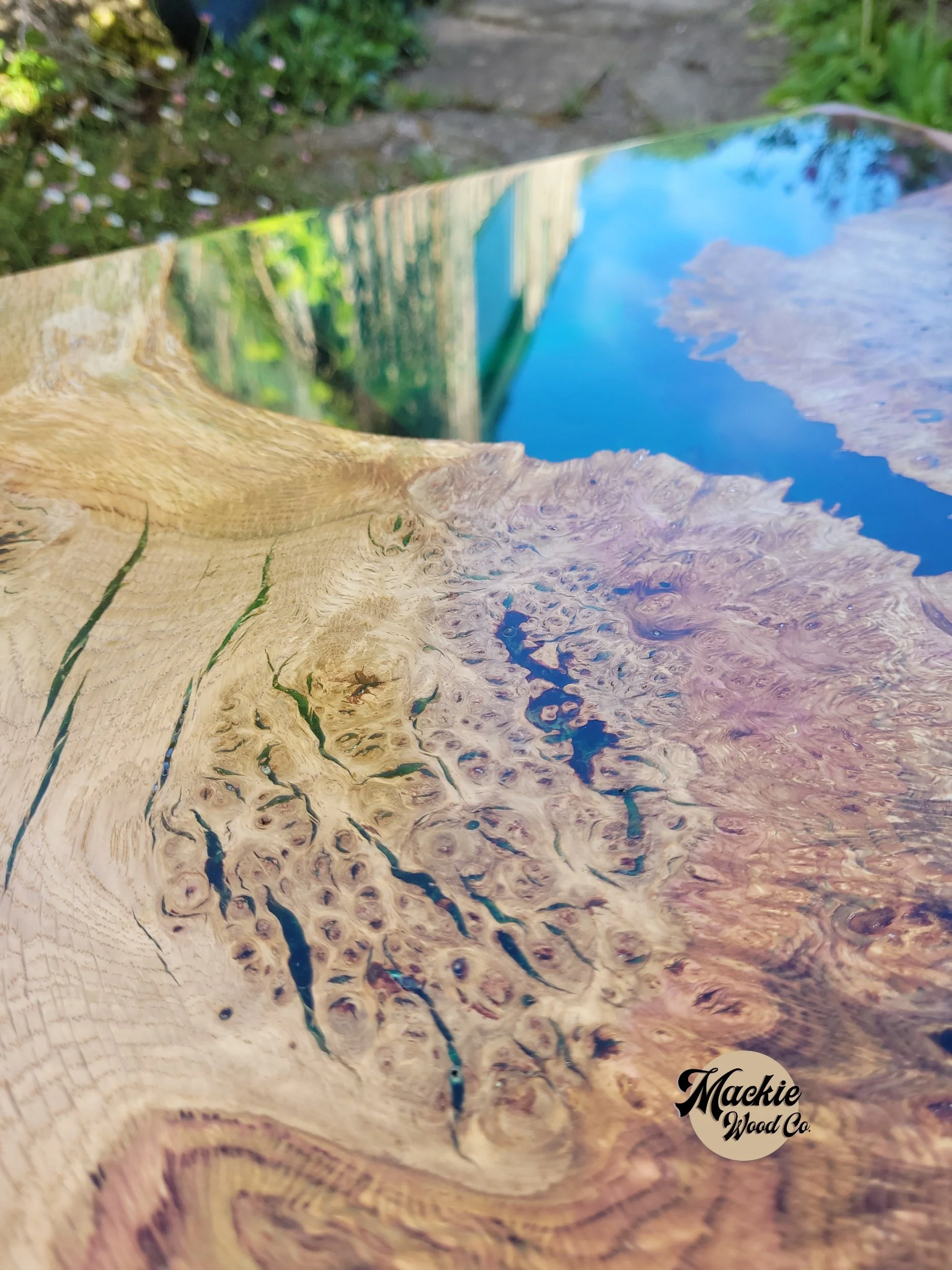 My handmade bespoke resin table is a complete one off statement piece. Made using burr oak, which was carefully selected for this amazing coffee table.